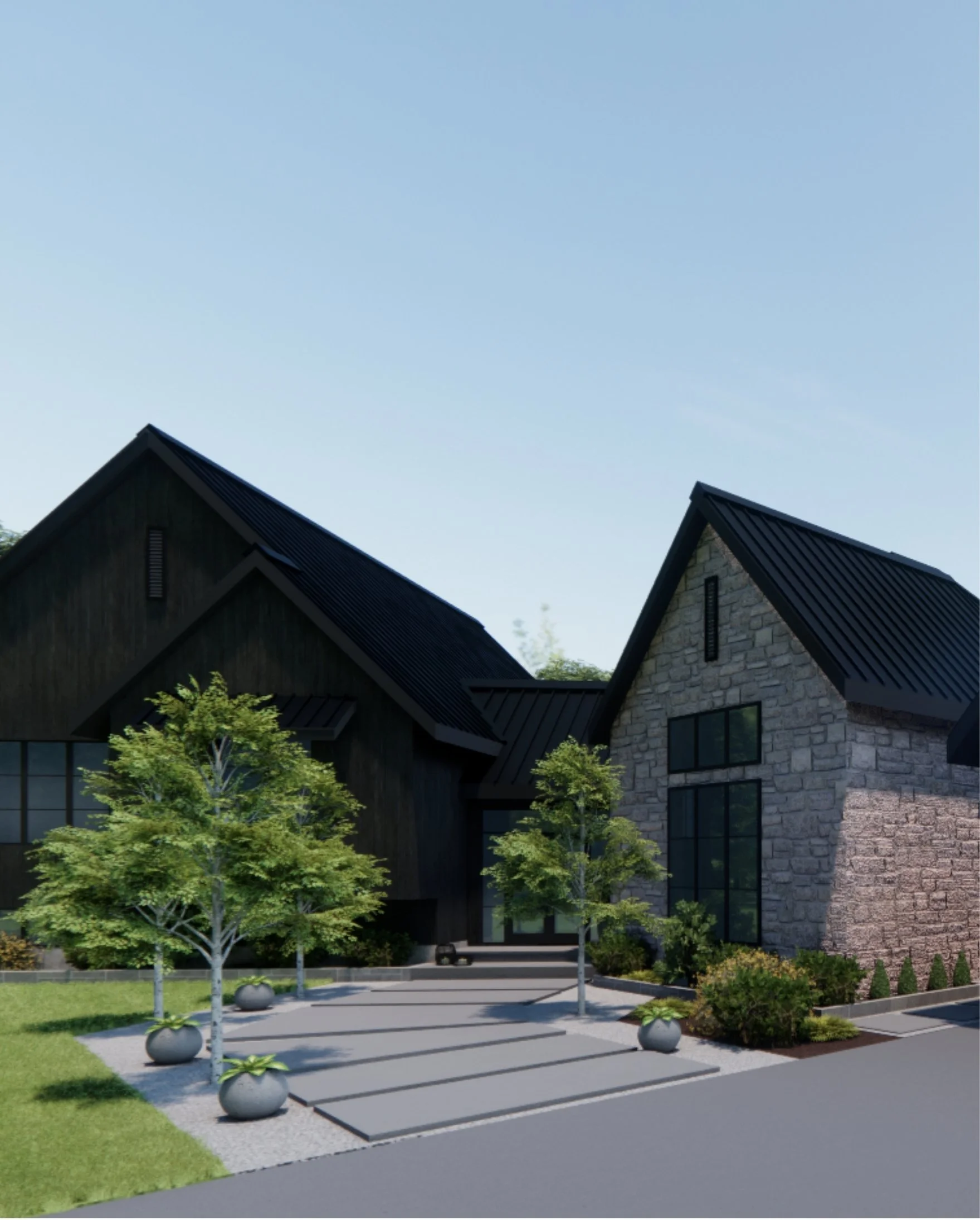 We’ve reimagined this side split home into a spacious, modern residence with an emphasis on natural light and privacy. The design incorporates extensive glass to enhance the connection between indoor and outdoor spaces, creating a bright and airy environment. A dedicated wing for the family bedrooms ensures privacy, while a thoughtfully designed entryway divides the home into distinct personal and living areas, balancing functionality and comfort.