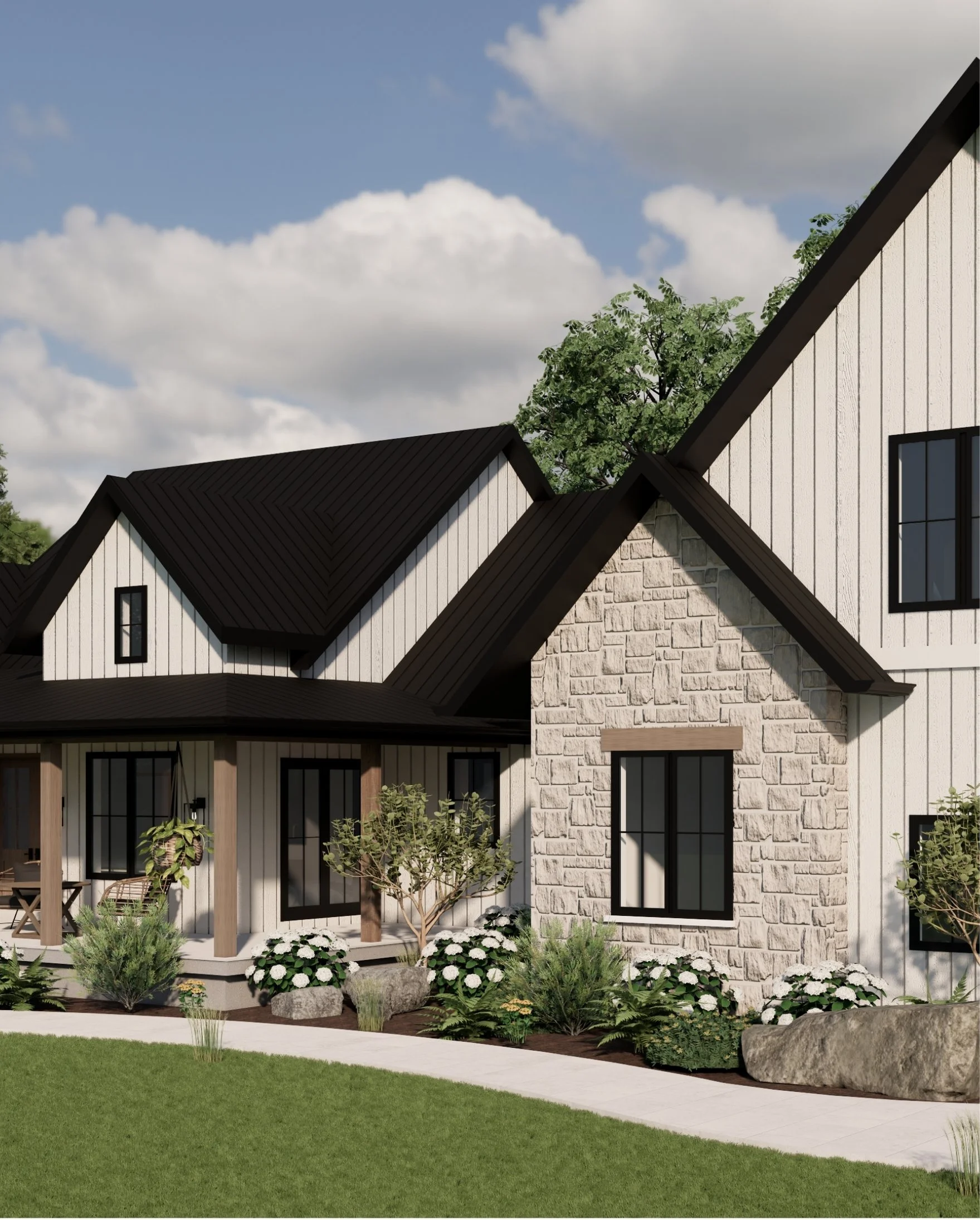 A new build on a large parcel of land, skillfully managing the project design within a budget. Despite the financial constraints, we designed a home that maximizes the use of space and natural surroundings, creating a functional and stylish residence. This project demonstrates our ability to deliver high-quality design solutions while respecting budgetary limits, ensuring a beautiful and practical home for our client.