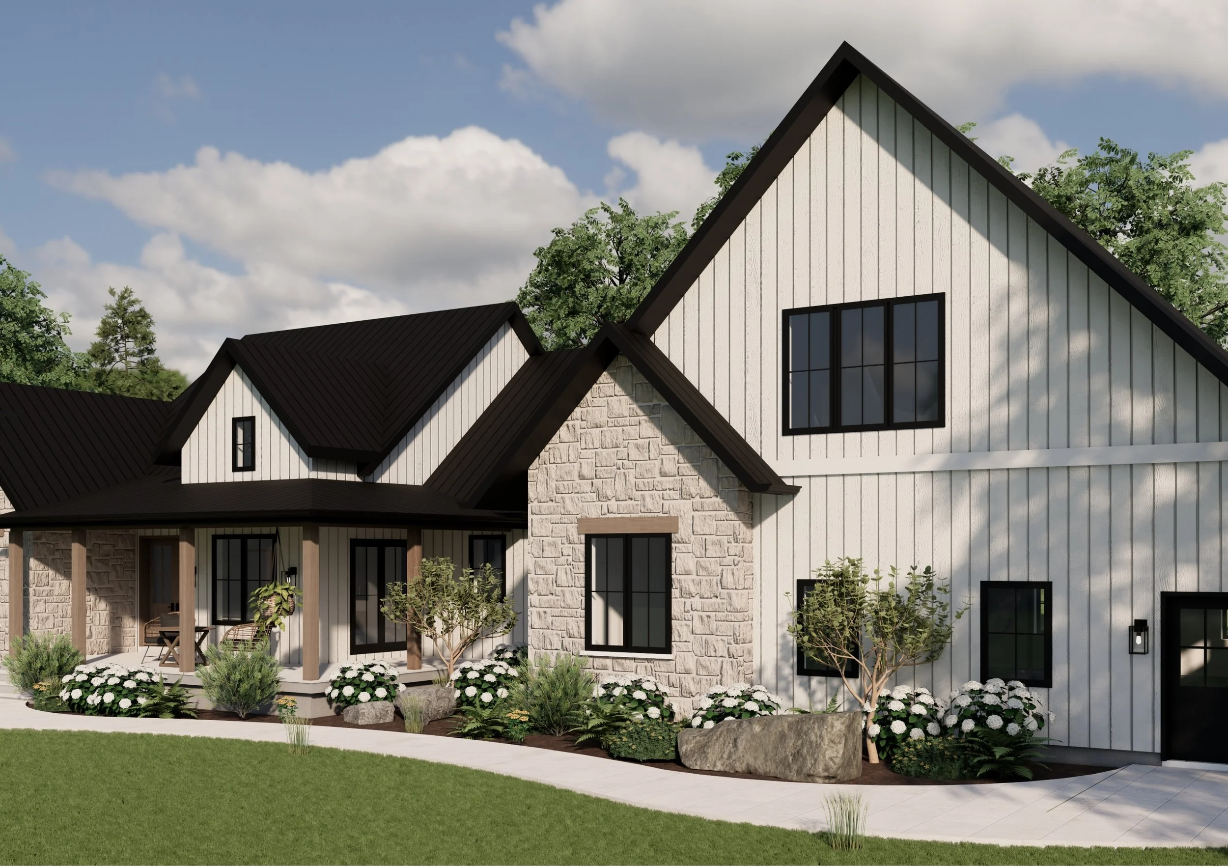 In this step, our team creates a site plan and preliminary floor plan tailored to your needs, suggesting ideal space sizes and layouts. Once we finalize the preliminary layout together, we proceed with generating elevations, including material placements, window and door locations, and roof configuration. We collaborate closely with you to ensure the design meets your needs and aesthetic preferences.